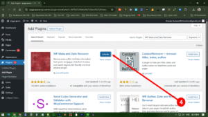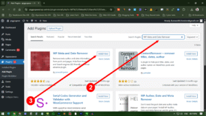 In the search box at the right corner of the page, you need to type “WP Meta and Date Remover” and click search button, then install the plugin.